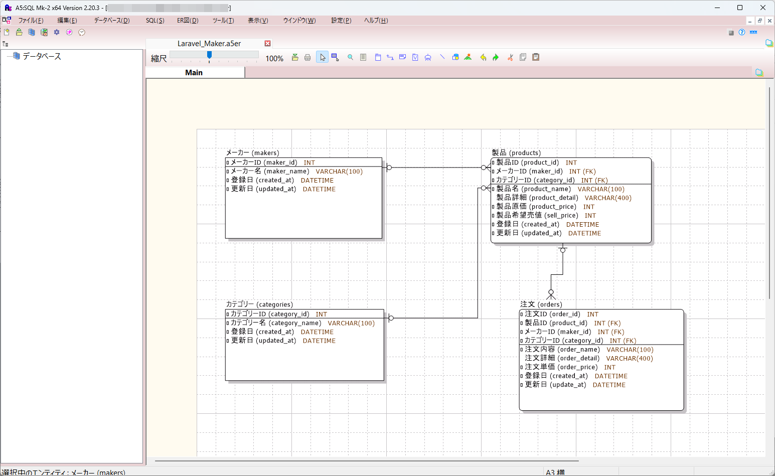 では、問題提起をしたサンプルER図について、逆解析して行きたいと思います。