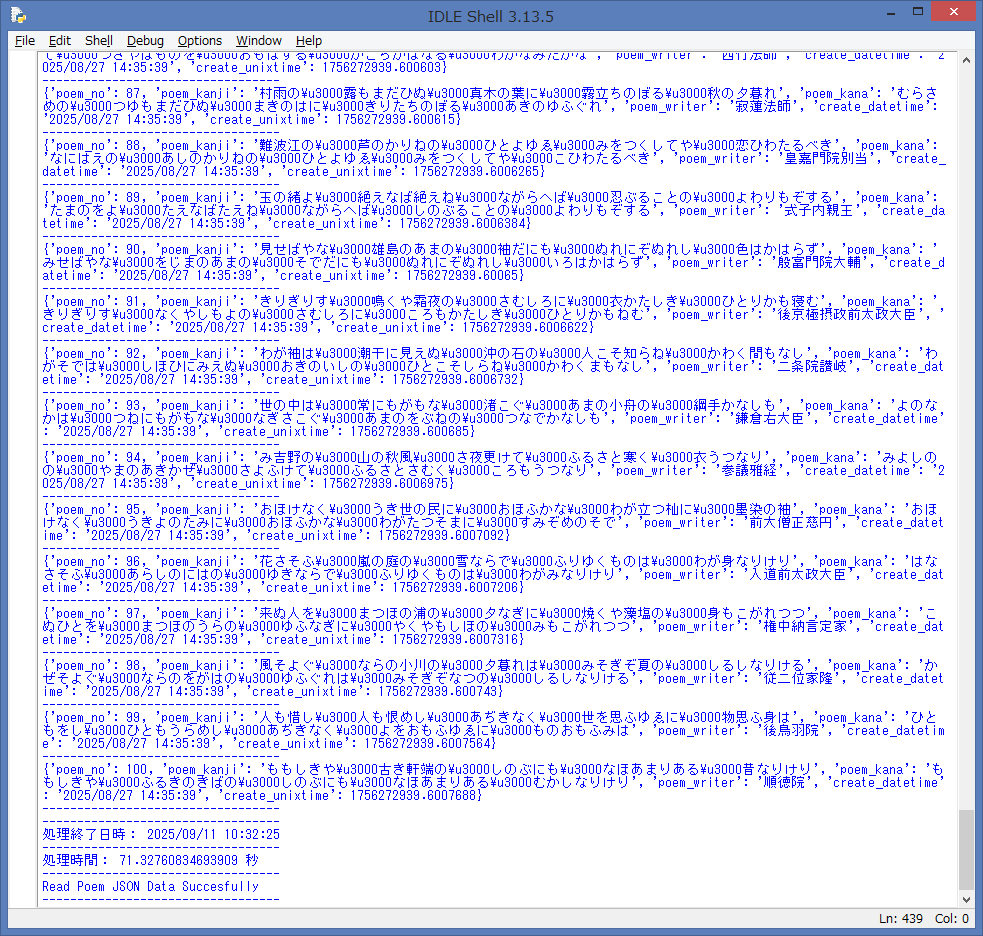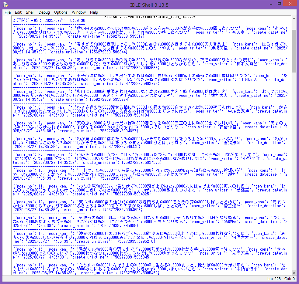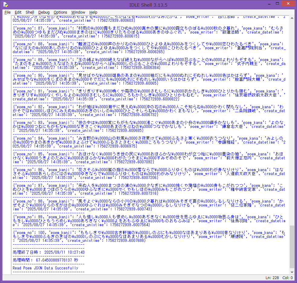 100首の「百人一首」データが、書き込まれている事が確認出来ました。