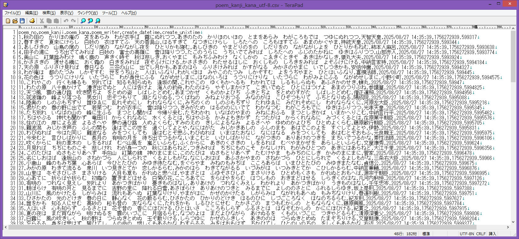 out_file = "./data/poem_kanji_kana_utf-8.csv"