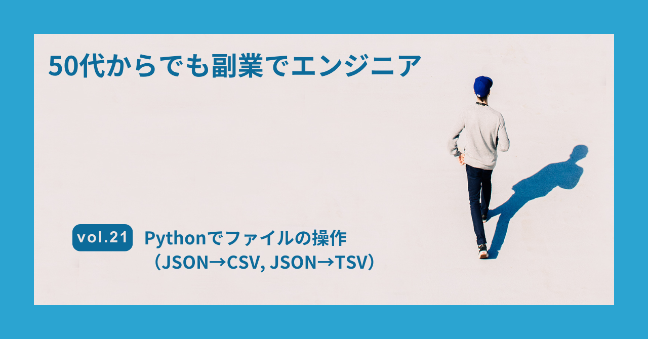 今回は、前回の記事とは逆のファイル操作として、JSONファイルを読み込み、CSVファイルや