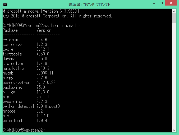 インストール済みのライブラリについては、下記のコマンドで確認が出来ます。