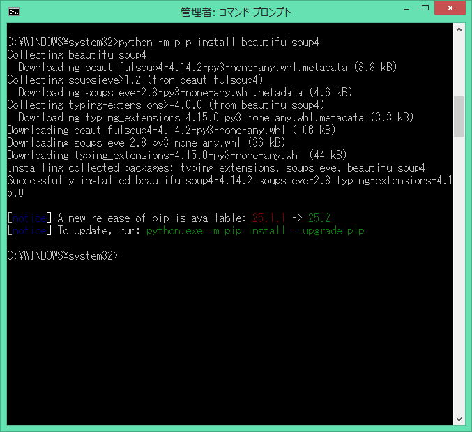 BeautifulSoupライブラリのインストール