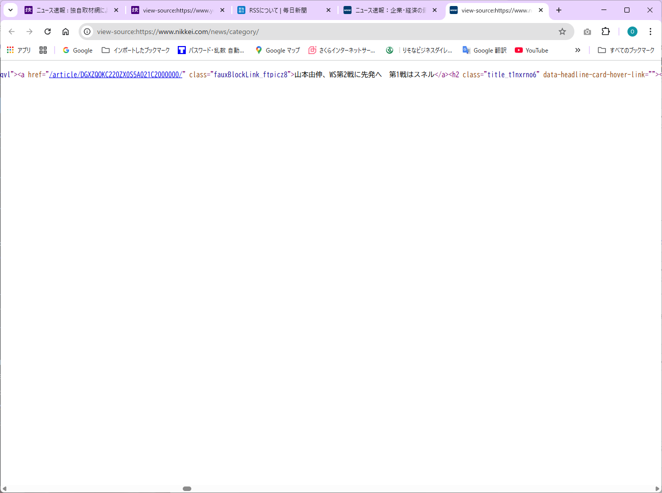 ソース例:日本経済新聞 Webサイト スクレイピング