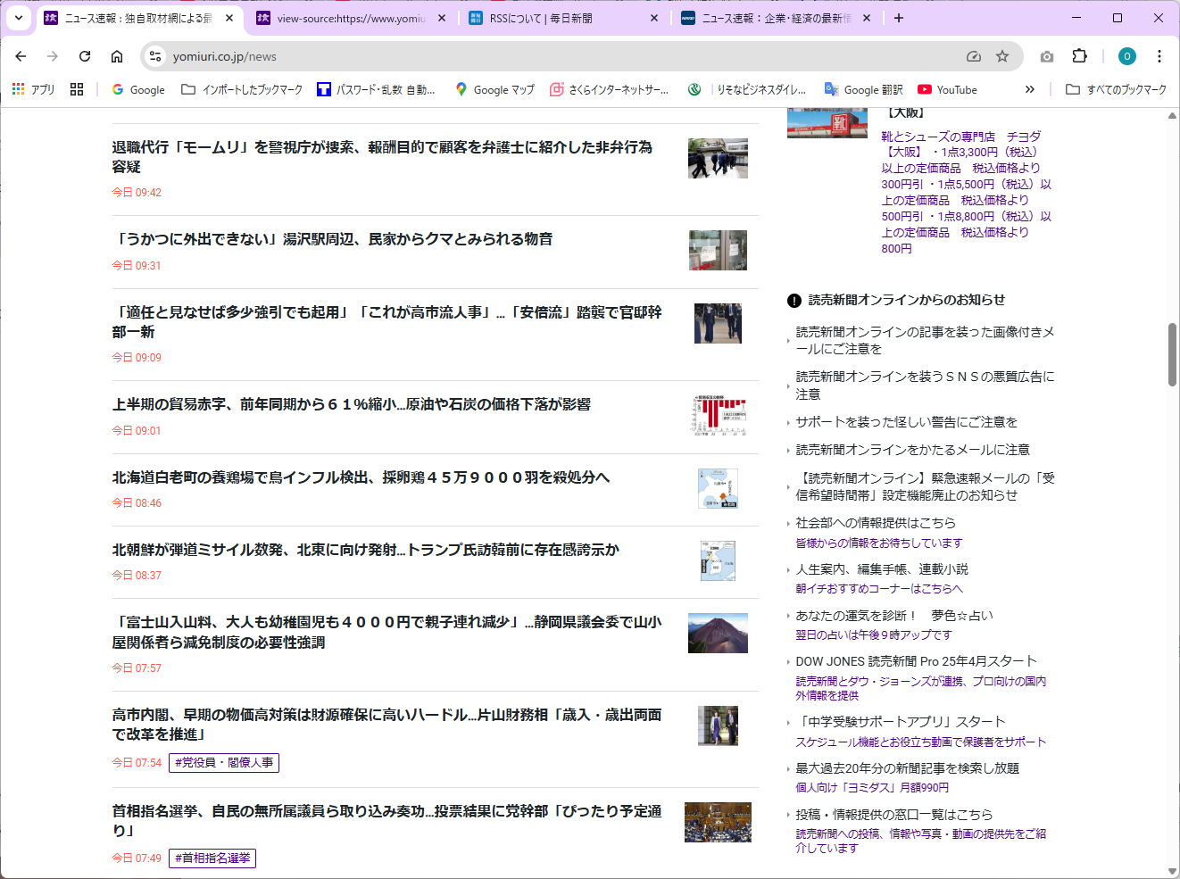 - 読売新聞 Webサイト:Webスクレイピング