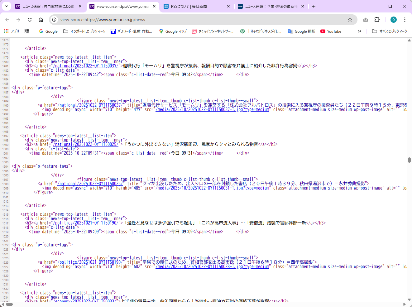 ソース例:毎日新聞 RSS フィード解析