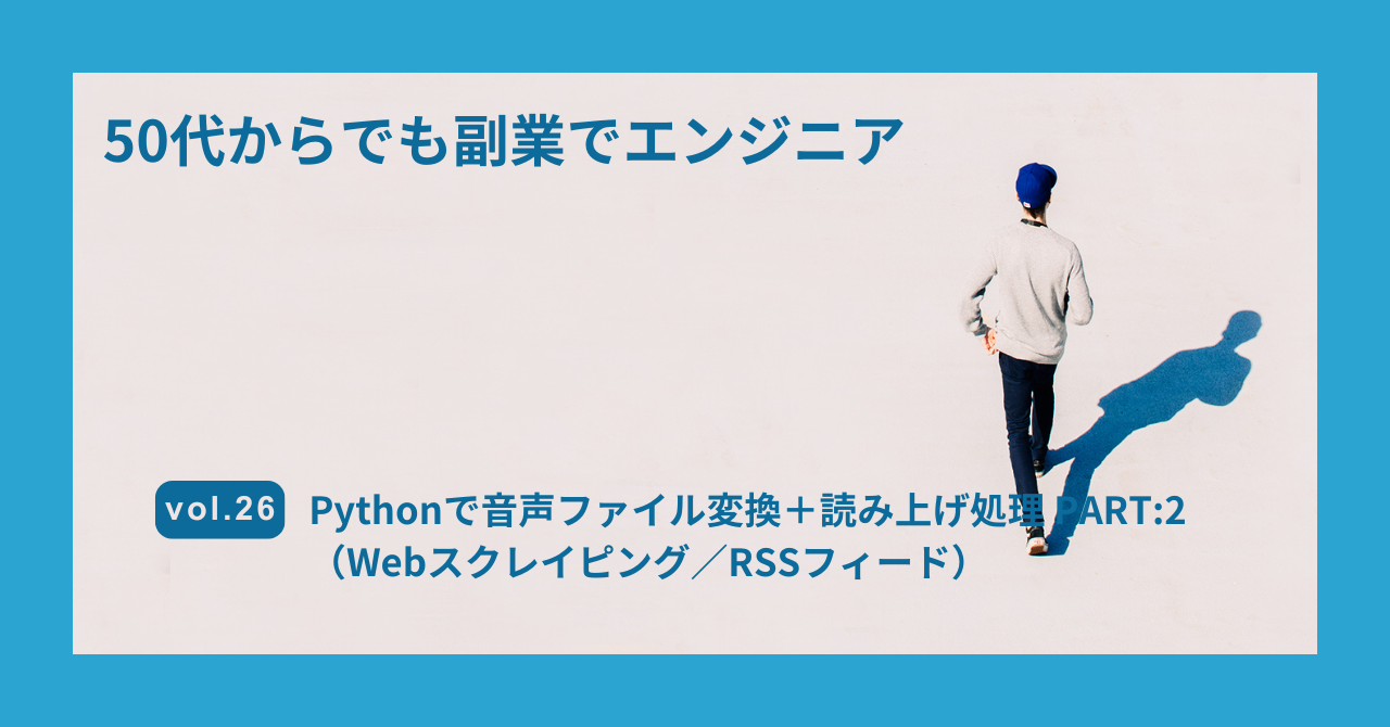前回の記事では、Yahoo! ニュース を Webスクレイピング処理した後、音声ファイルに