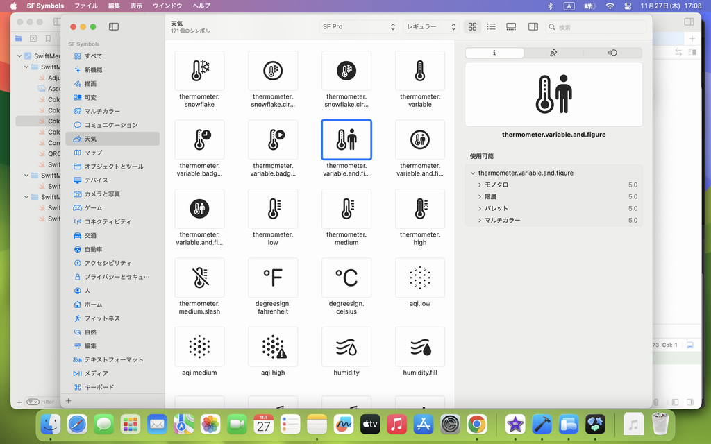 こちらは、SF Symbols で、thermometer.variable.and.figure のアイコンを表示した