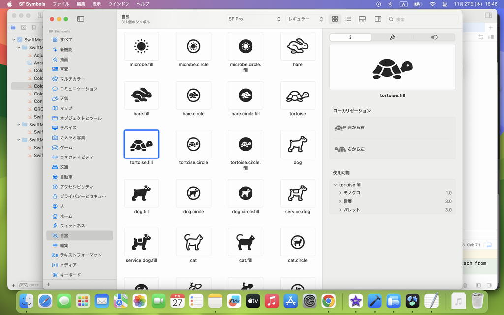 こちらは、SF Symbols で、tortoise.fill のアイコンを表示した画面です。