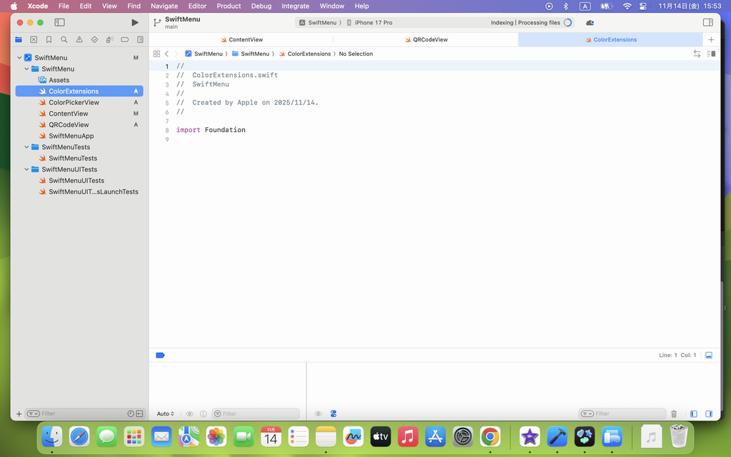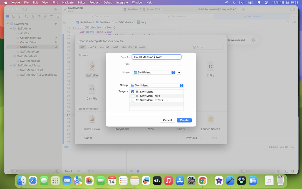 Create ボタンを押して、ColorPickerView.swift を作成します。