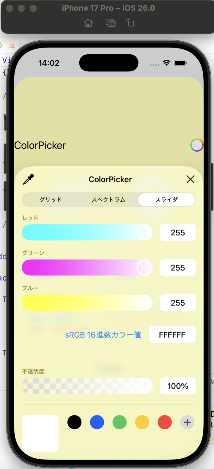 • カラーピッカーSwiftUI色(Color)選択(ColorPicker)