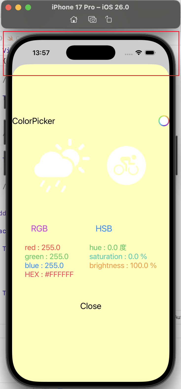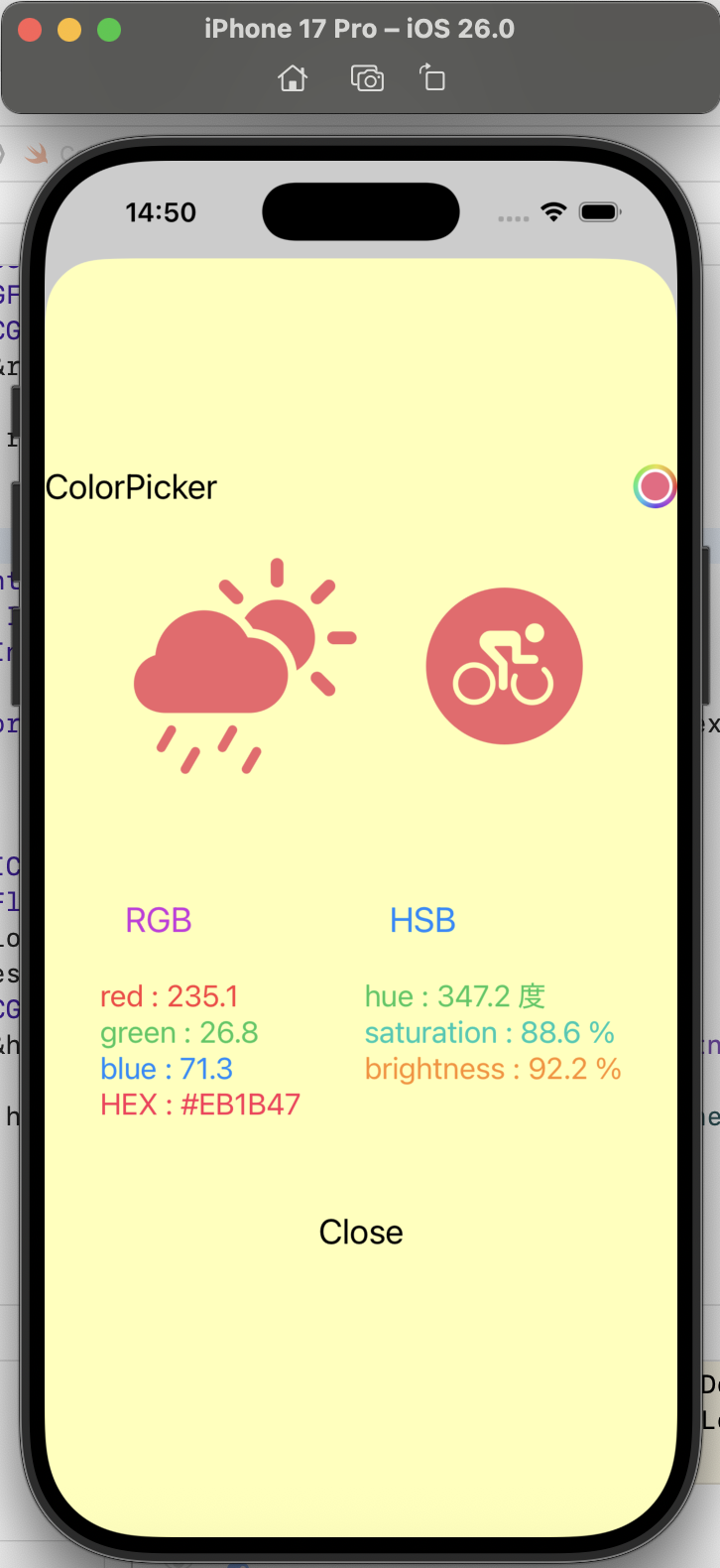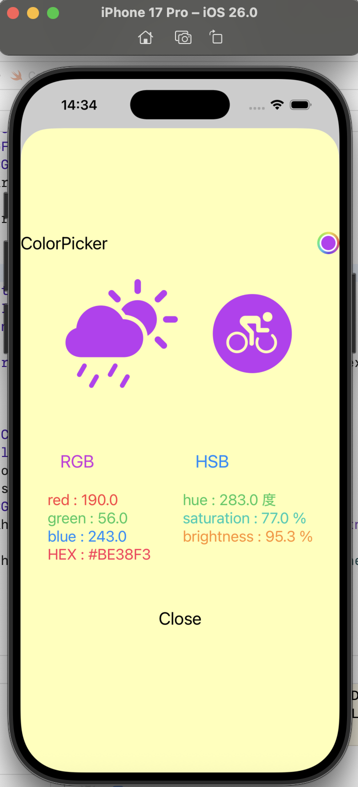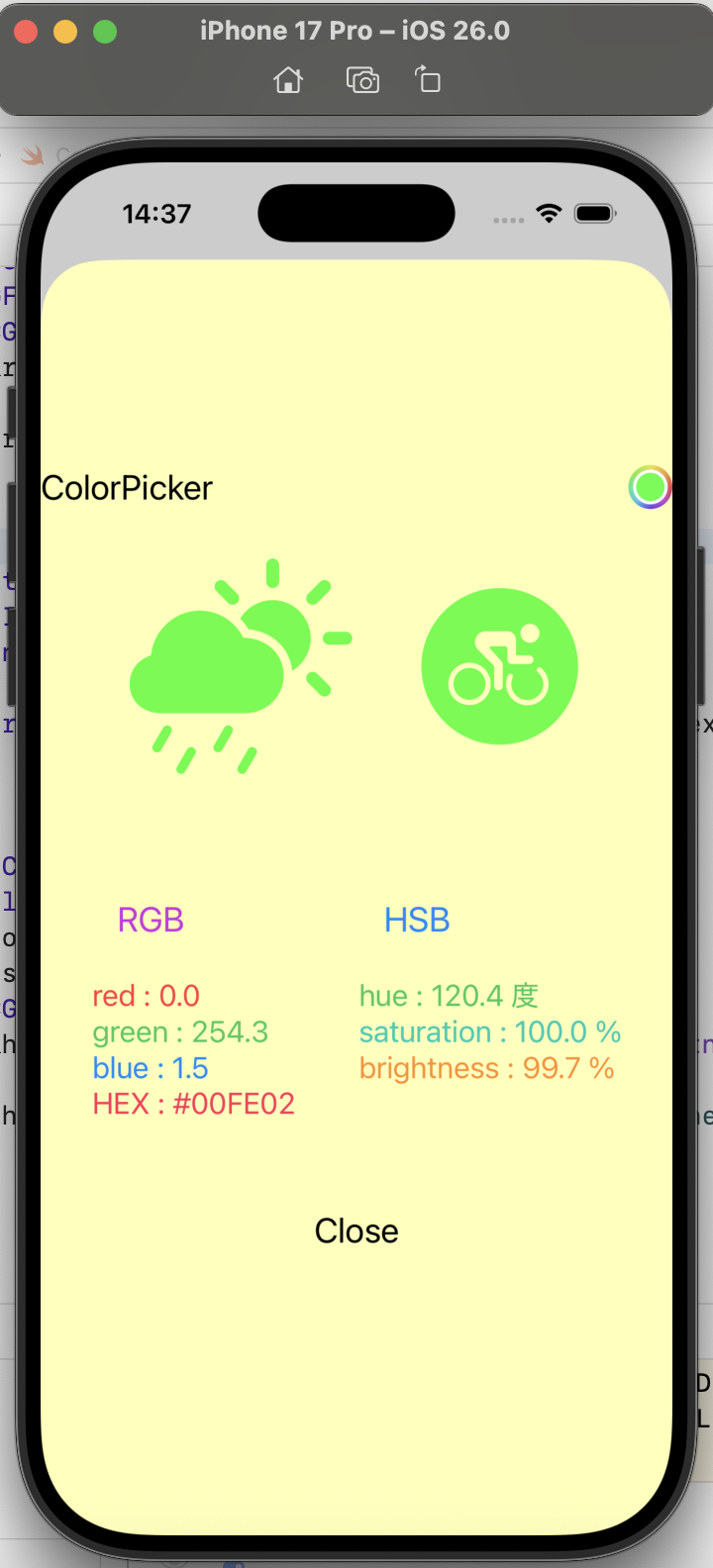 ColorPicker の右上の×印押してColorPickerView(色選択アプリ)