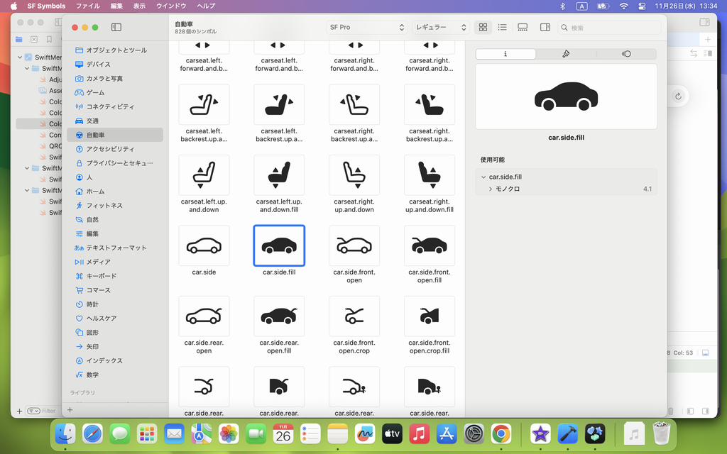 こちらは、SF Symbols で、car.side.fill のアイコンを表示した画面です。