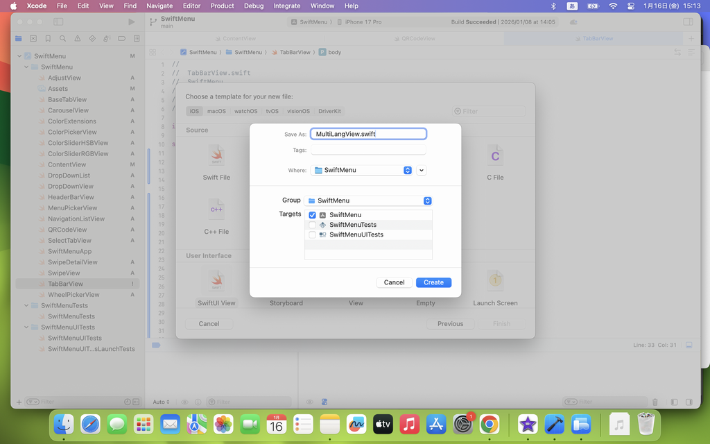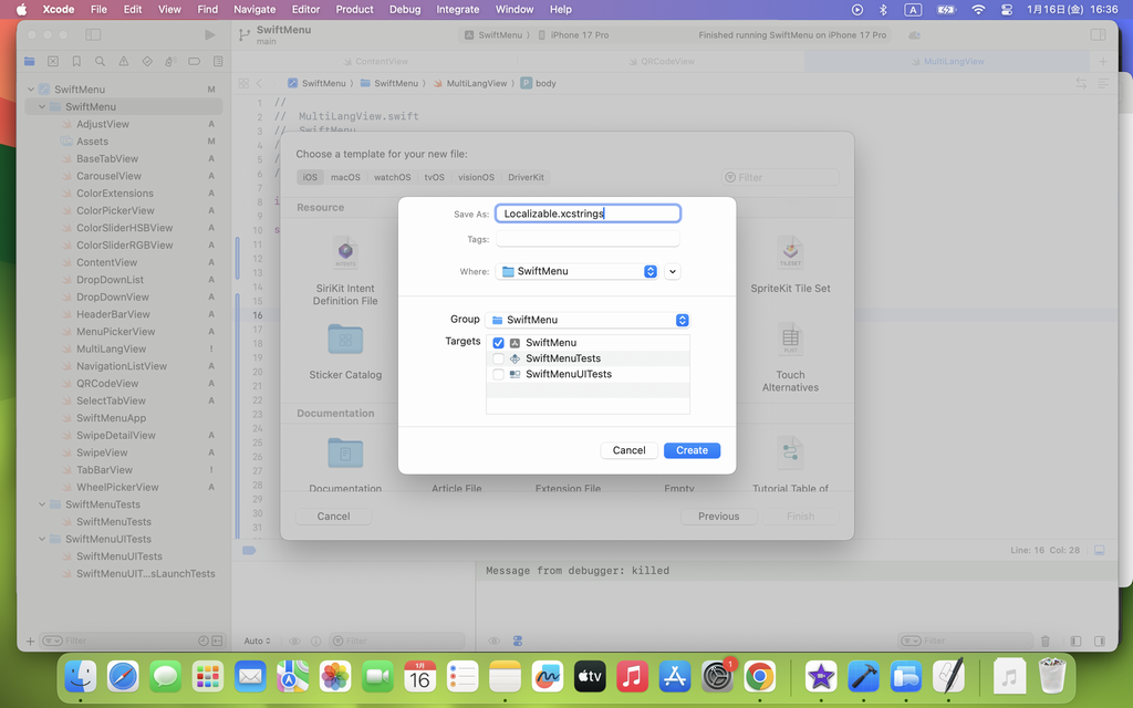 Create ボタンを押して、MultiLangView.swift  を作成します。