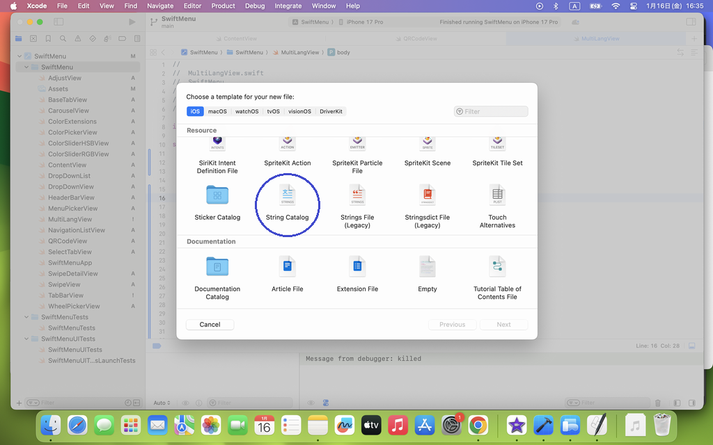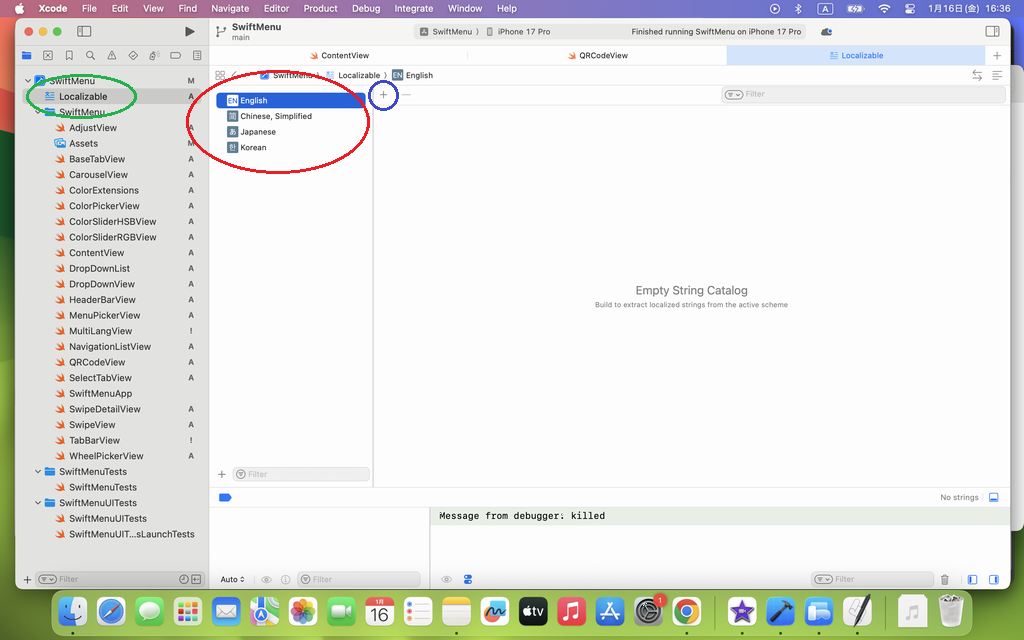 String Catalog(下記の青枠) を選択します。