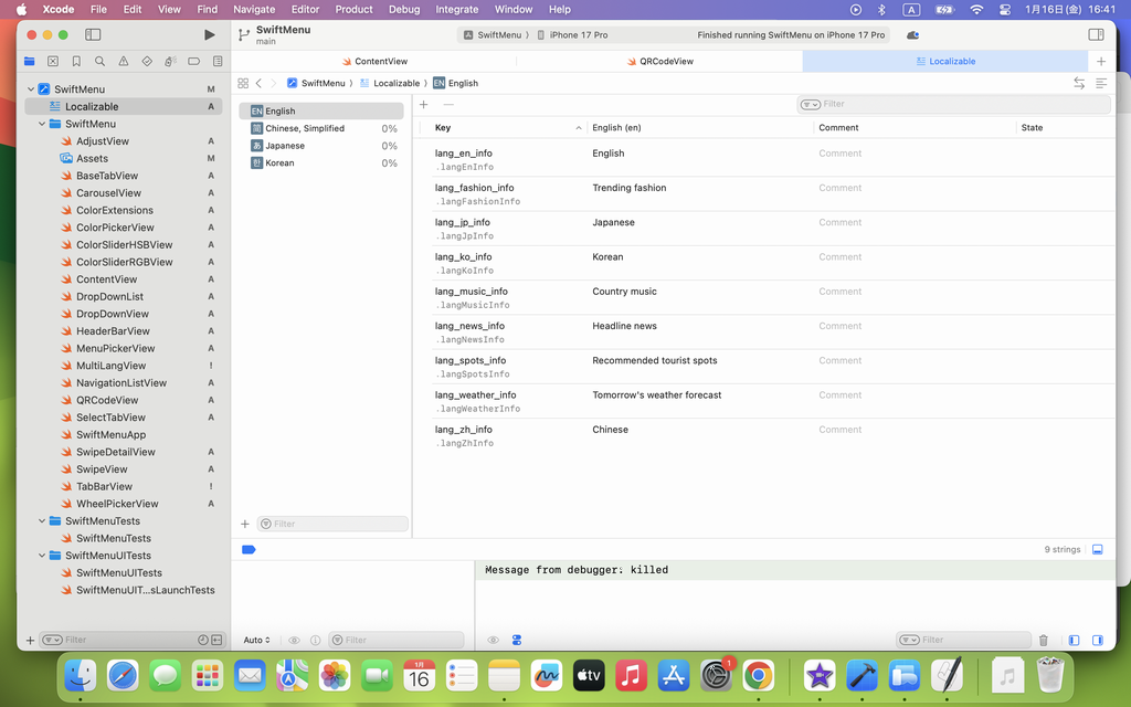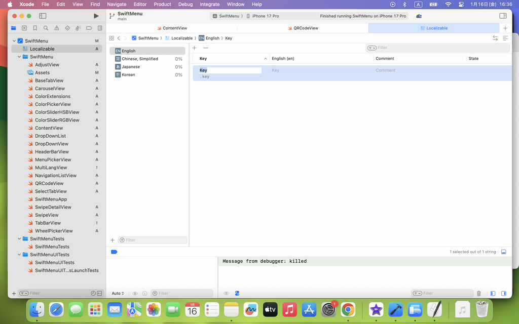また、Localizable File の中には、先程、Project で設定した Localizations