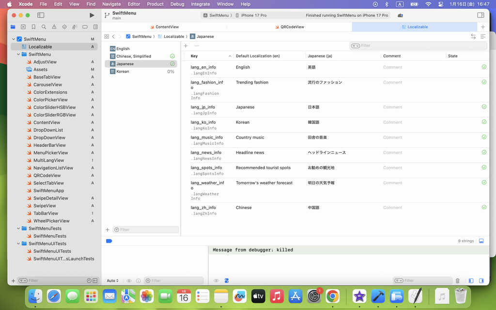 また、当時は Strings File で、各言語 key値(文章)を実装して納品しましたが、現在、