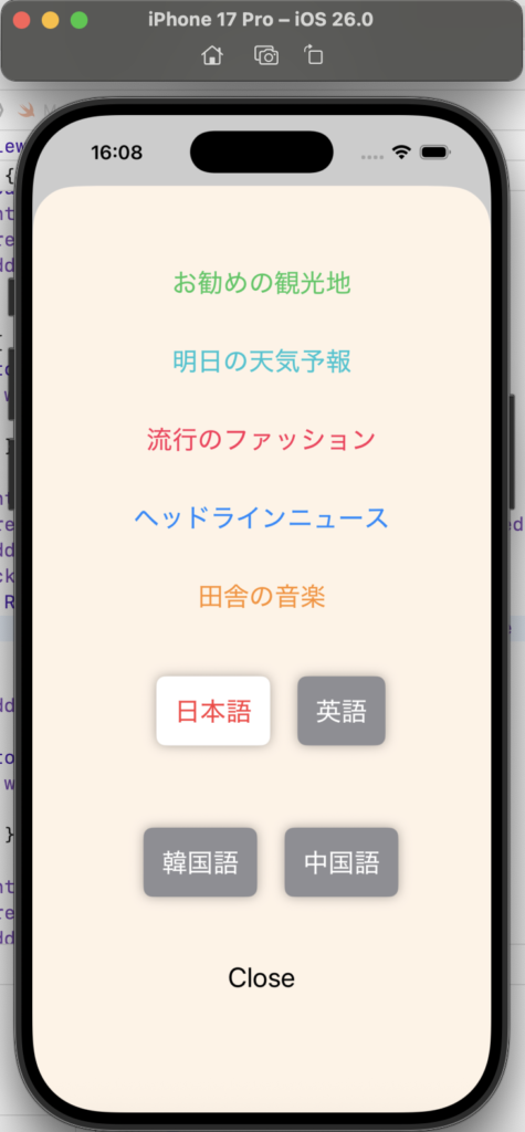 2026年初頭現在も、SwiftUI ボタンピッカーを利用して、マルチ言語(多言語)