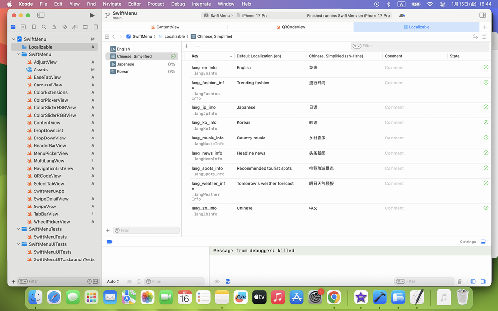 Project に、日本語韓国語中国語(簡体字)設定されましたので、次は、各言語