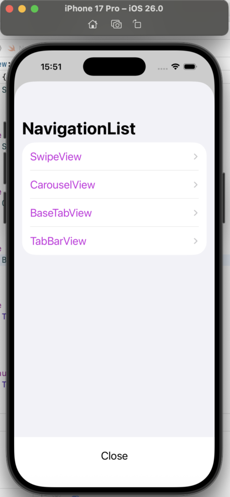 続けて、NavigationListViewボタンを押してみます(タップします)。