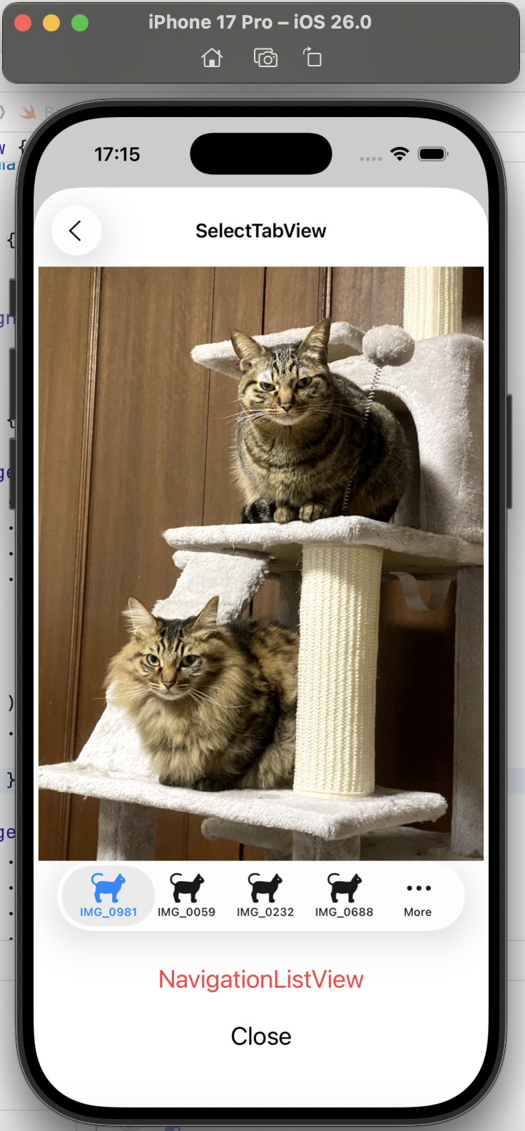 NavigationList の4段目の TabBarView を押してみます(タップします)。