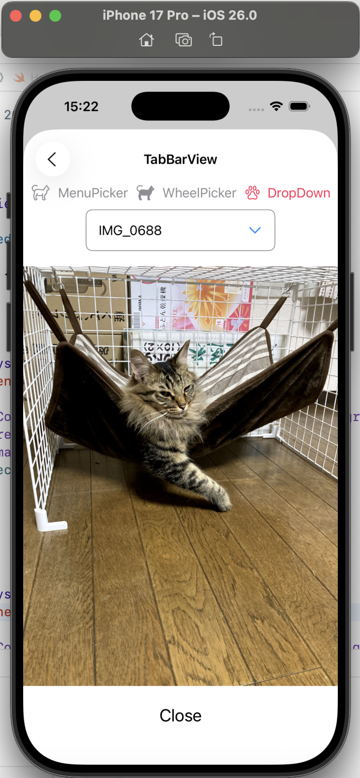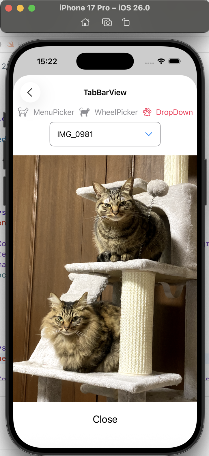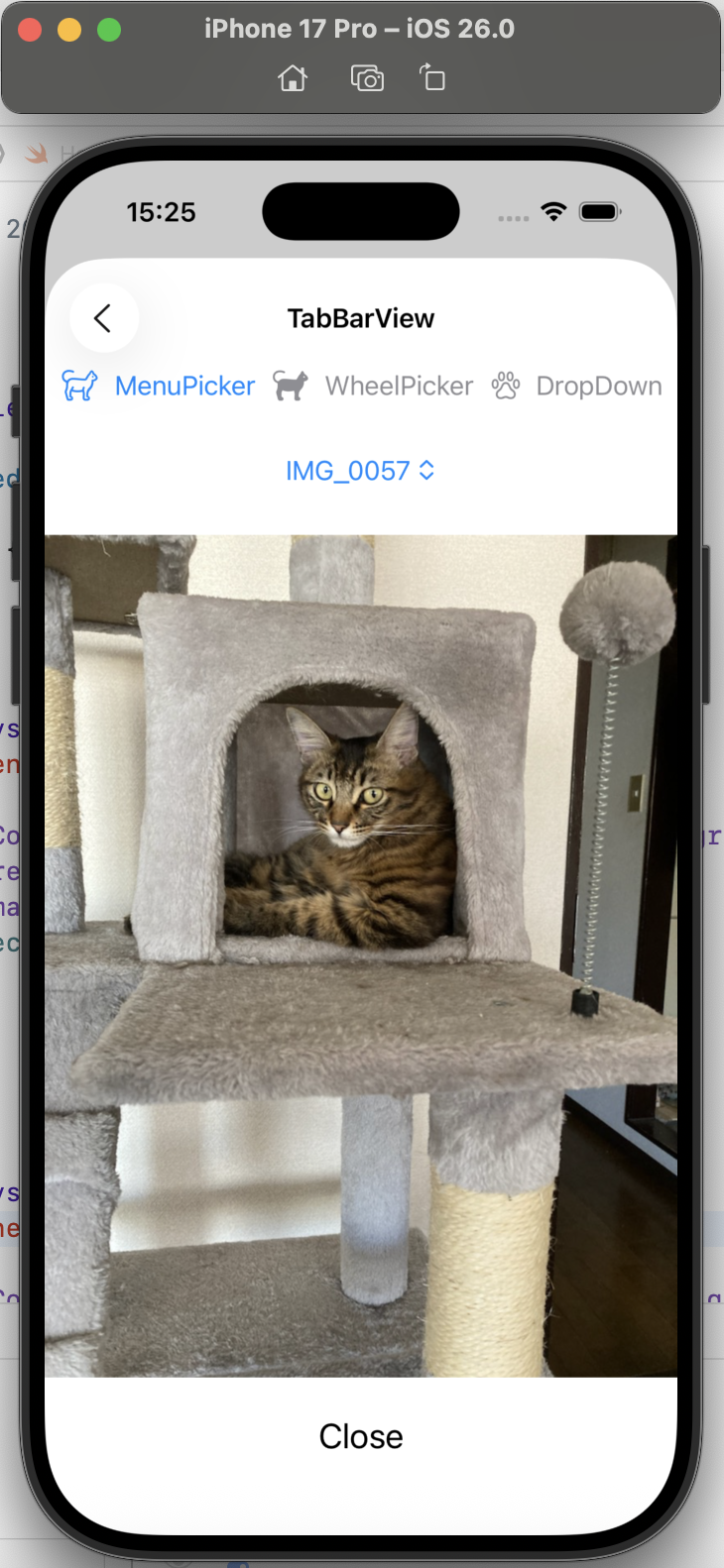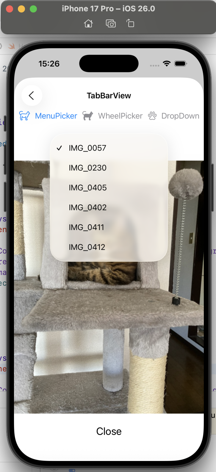 - 上部Tabの左側は、グレー色の猫のアイコンと MenuPicker の文字はそのままです。