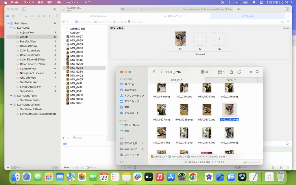 横にスライドして、猫のアイコン&画像名のリスト画面が表示されました。