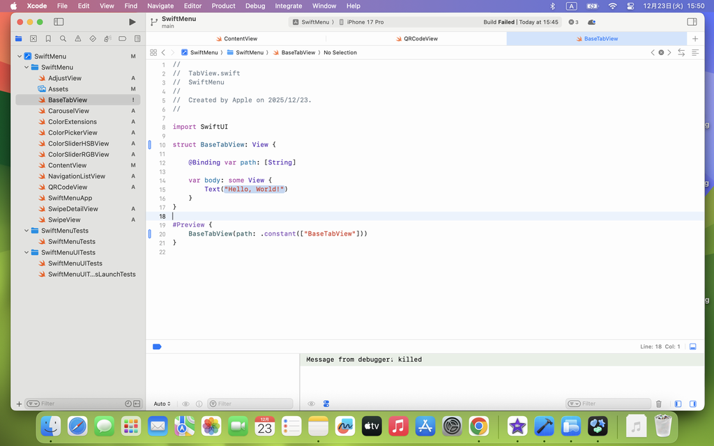 TabVeiw.swift と SelectTabVeiw を作成して処理の実装を進めて行きますが、今回、